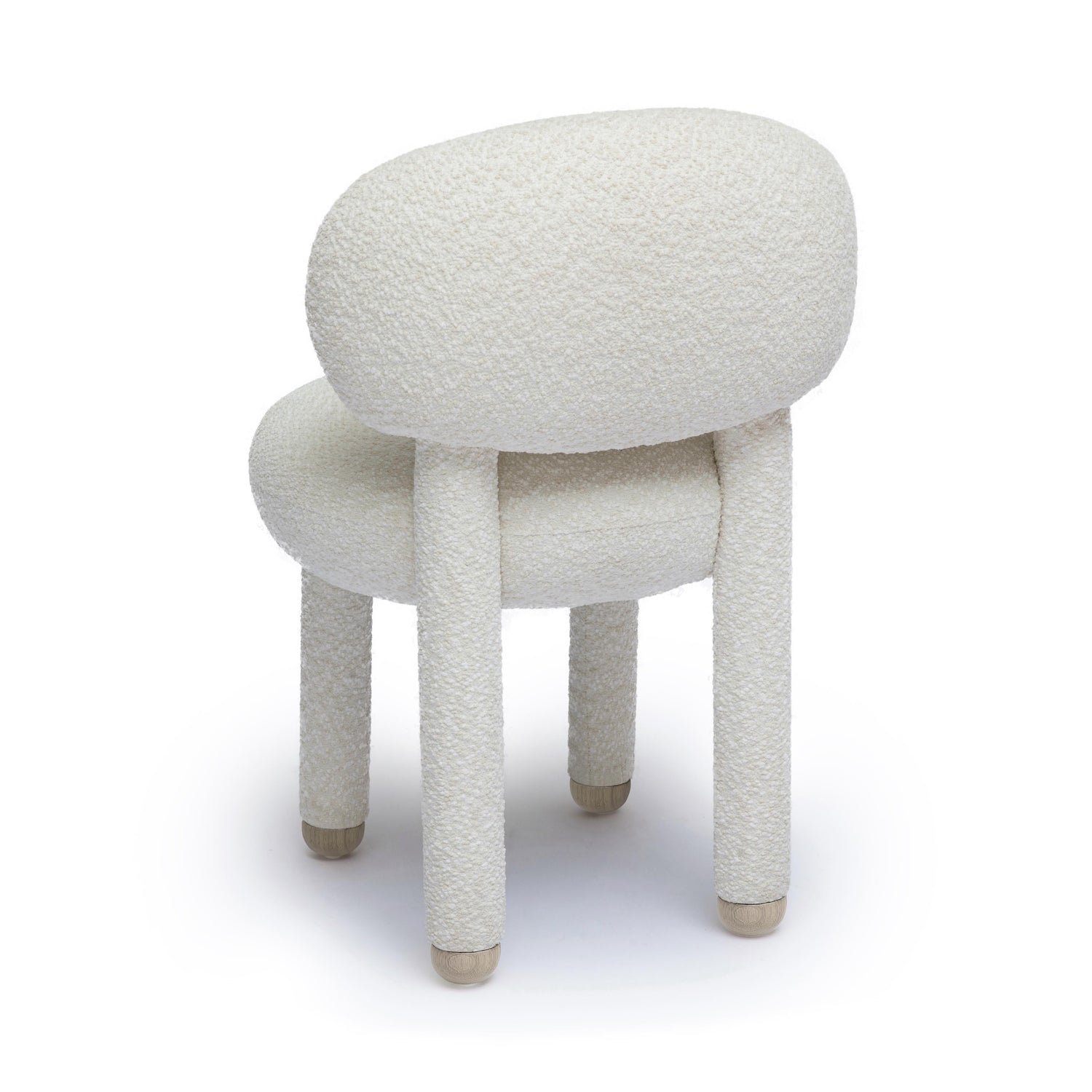 The Manu Vanity Side Chair perfectly combines style and comfort with its supportive backrest, exceptional cushioning, and sturdy solid wood legs. Available in chic fabrics like Nubby Teal, Nubby Beige, Cream Boucle, and Rose Pink Boucle, this chair is a modern twist on retro elegance. Whether gracing your vanity, desk, bedroom, entryway, or serving as a whimsical dining chair, the Manu is sure to add a touch of charm and whimsy to any space.