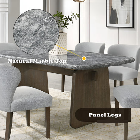 Dillon 7-Piece Dining Set with Natural Marble Table and Gray Chenille Chairs