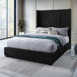 Sleek & Sophisticated Design – Ribbed fabric and wingback headboard elevate your room with contemporary style.