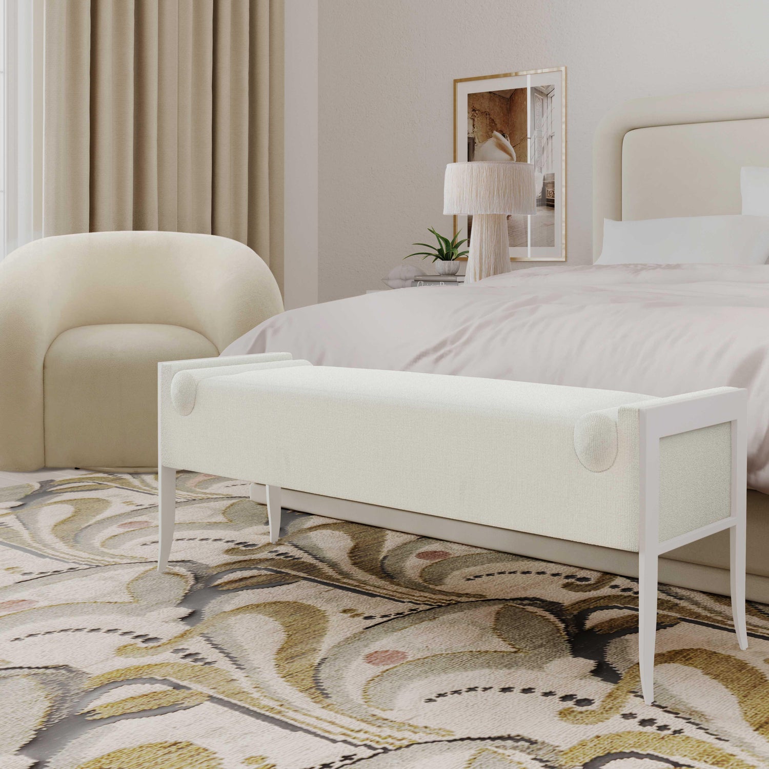 Ines 67" Cream Boucle Bench
