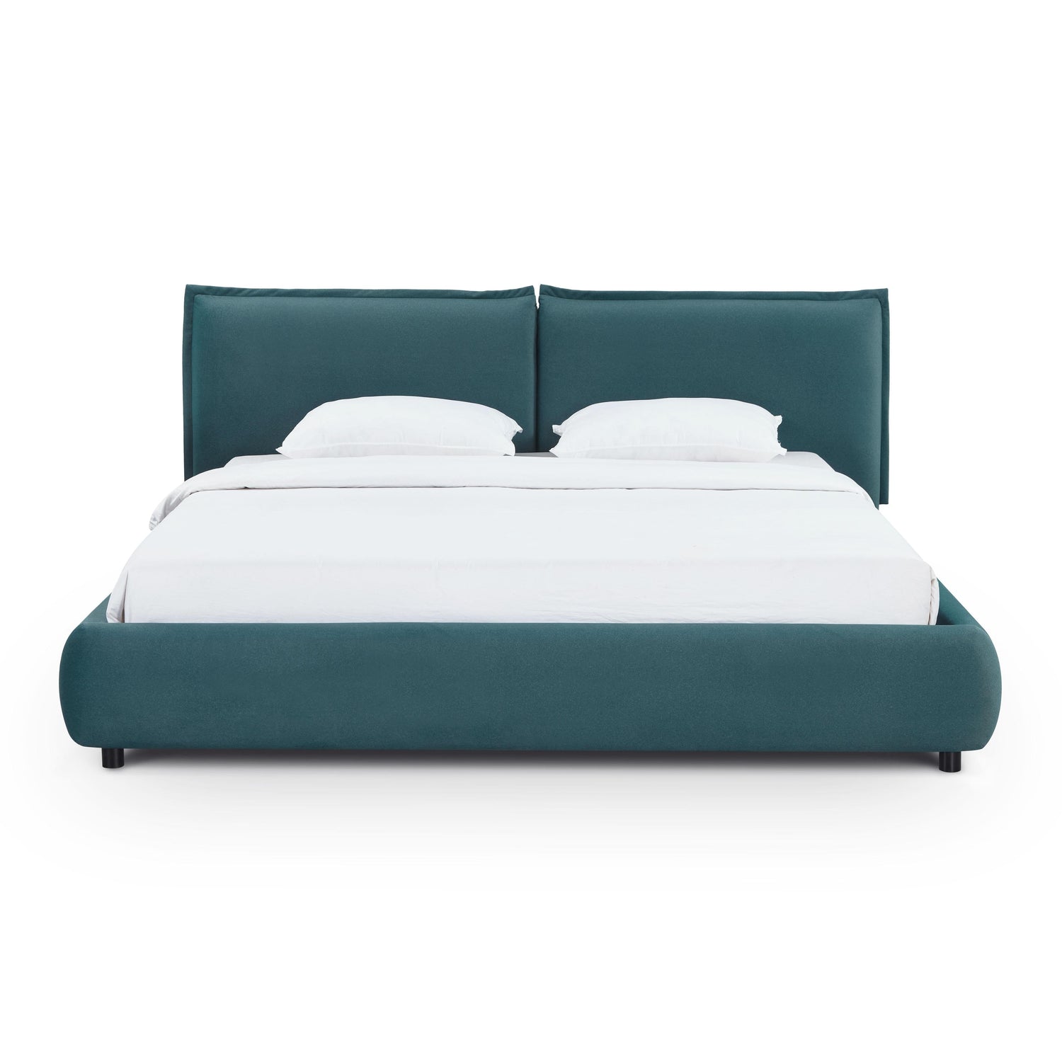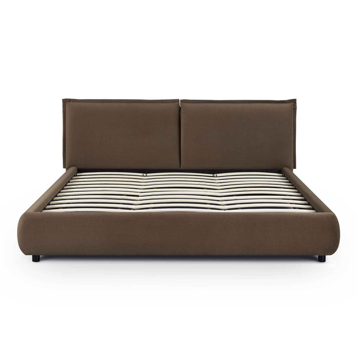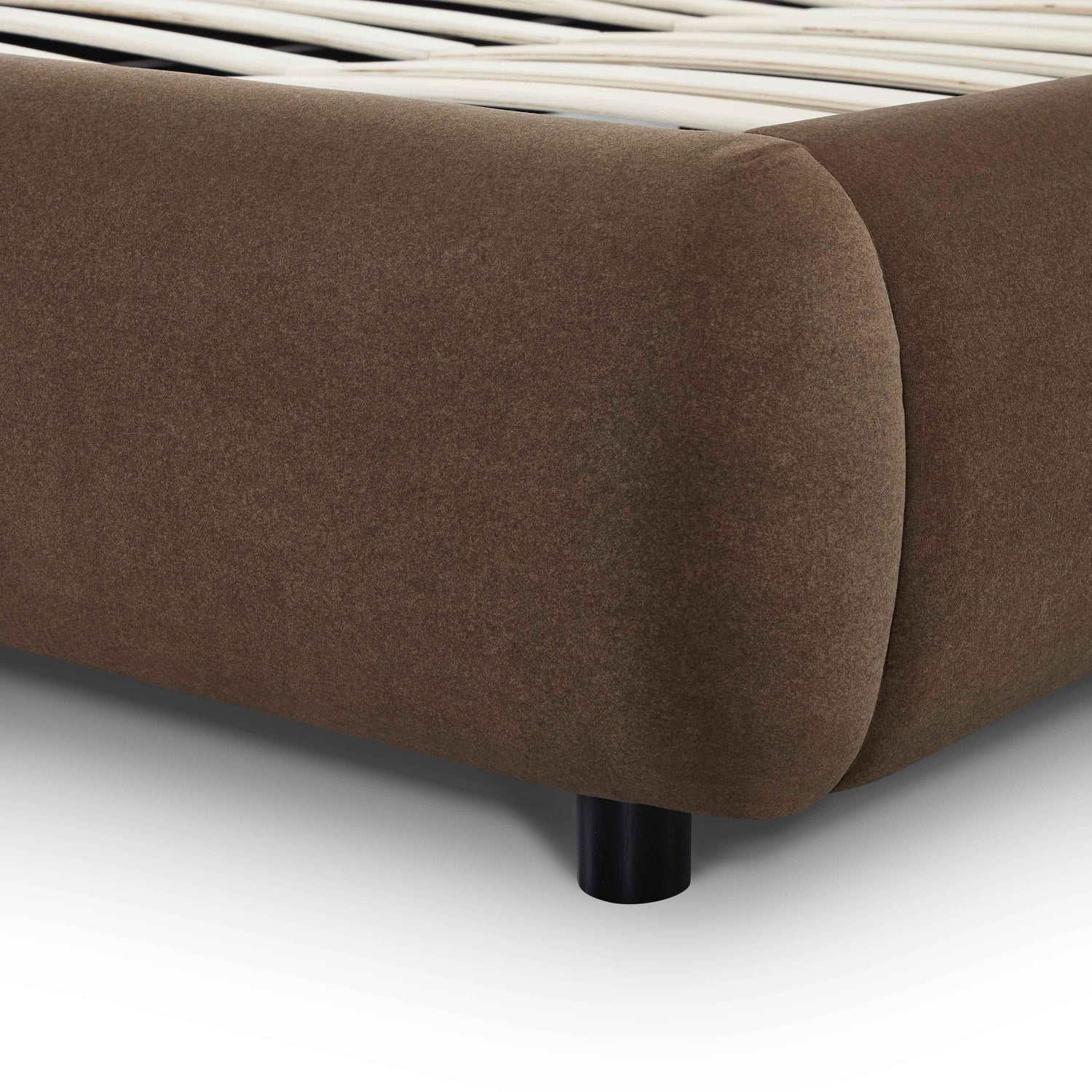 Wrapped in ultra-soft vegan mohair, this bed features a generously cushioned pillow-headboard made for lounging. With sculptural curves, dramatic flange trim, and rich color options, the Mel Bed brings warmth and an ultra-cozy presence to any bedroom.