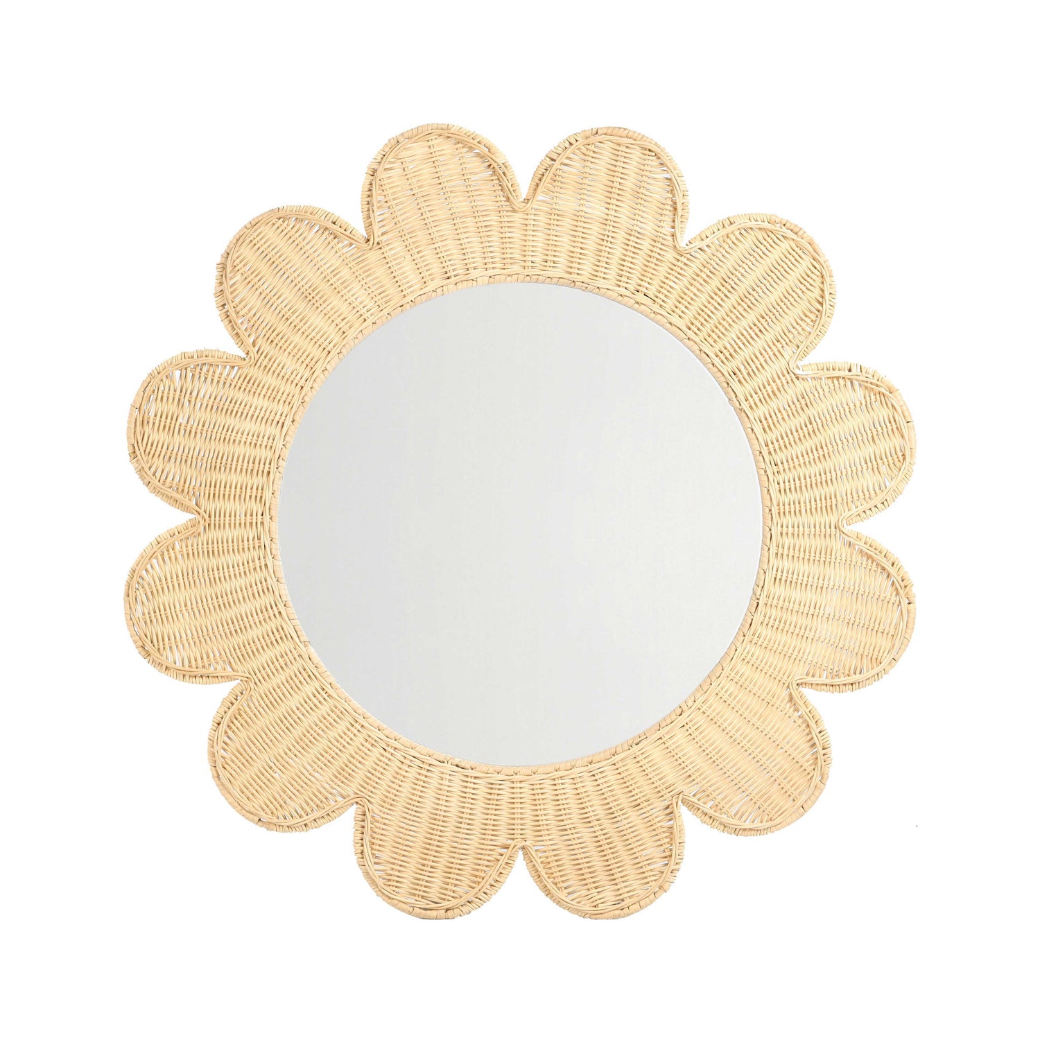 A sculptural twist on wall décor, the Coralie Rattan Round Mirror blooms with a bold, floral silhouette that instantly draws the eye. Handcrafted from natural or black rattan, its petal-like frame brings organic texture and whimsy to entryways, bedrooms, or anywhere that needs a little sunshine.