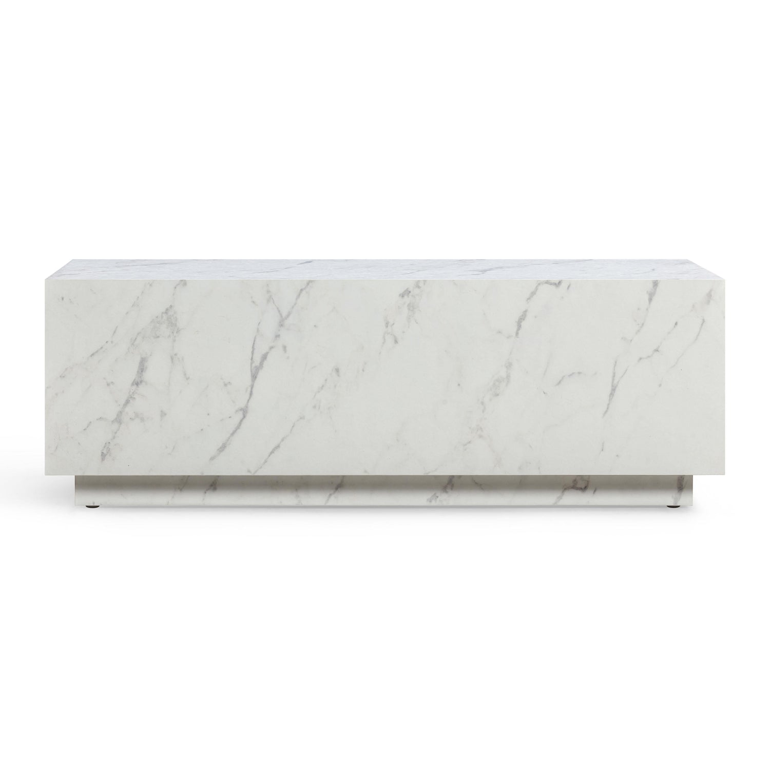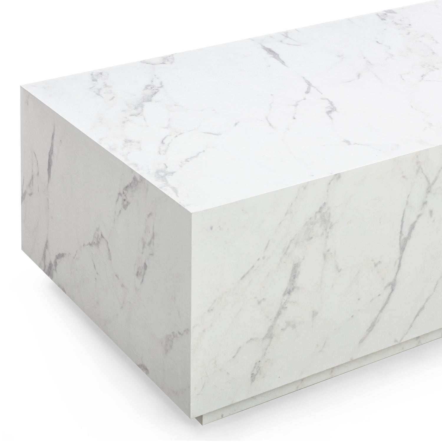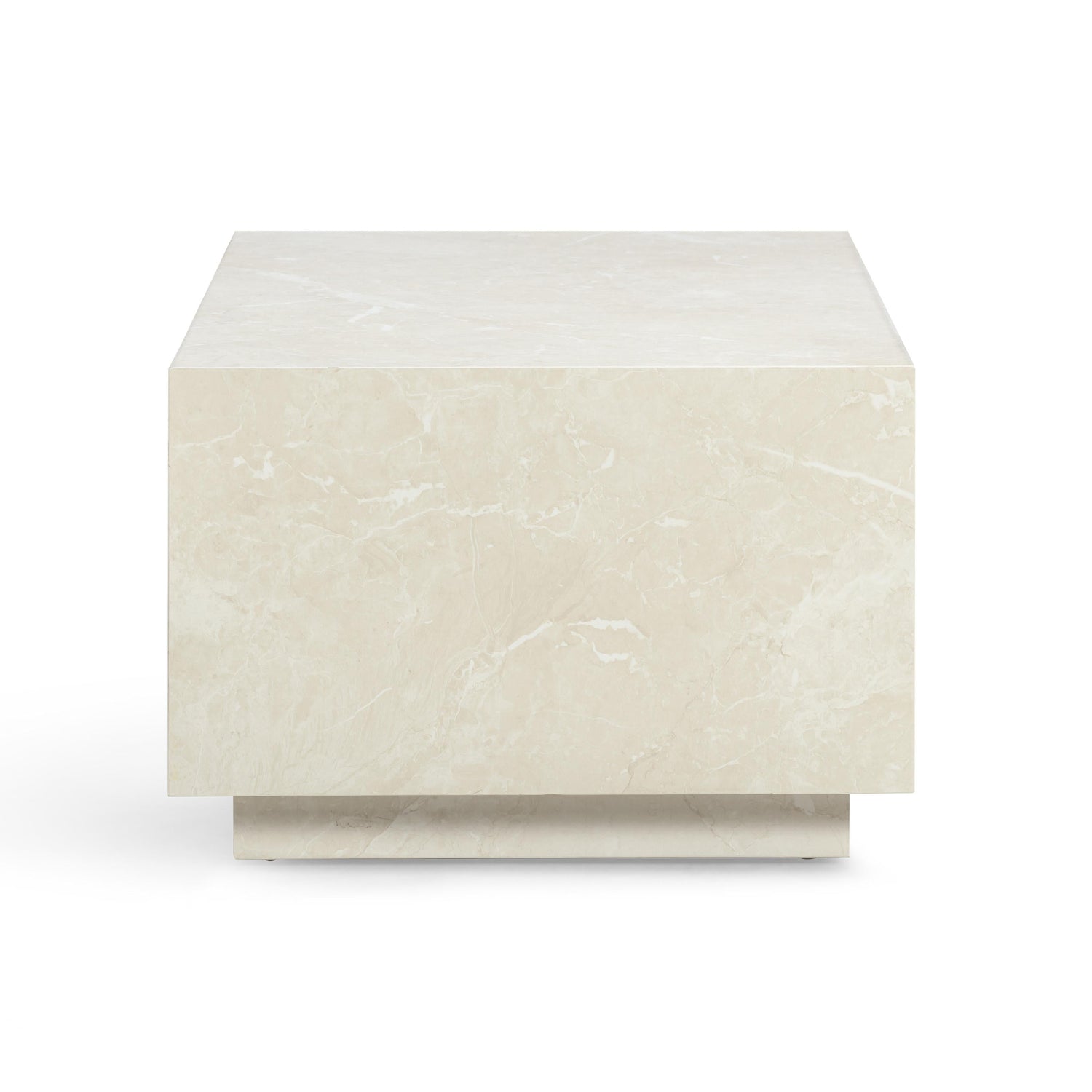 Streamlined and versatile, the Romy Coffee Table anchors your space with bold simplicity. Offered in faux wood, white marble, or cream travertine finishes, its wipe-clean surfaces balance high-style with low-maintenance practicality. Use one for a minimalist statement or pair two together to create a striking oversized square perfect for grounding a large sectional.