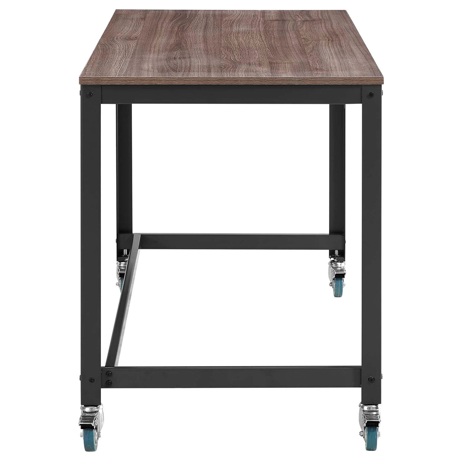 Infuse industrial accents with nostalgic farmhouse style. Made with a gray powder coated steel frame for support, the Vivify Computer Office Desk is topped with walnut grained veneer and rests on four 360 degree swivel casters with brake locking for added versatility. Perfect for instilling country charm, Vivify also doubles as an indoor plant stand or general use kitchen, entryway or living room area table.