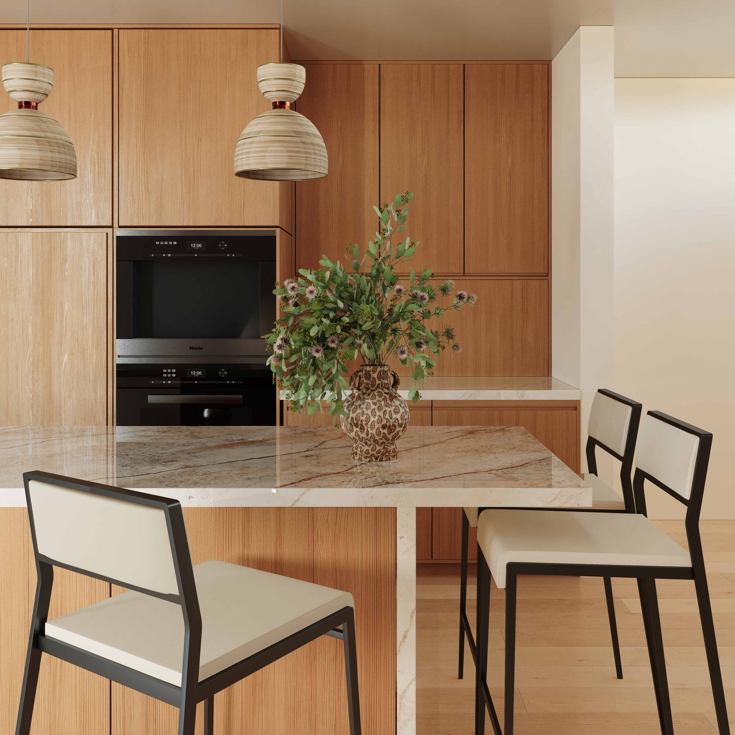 Transform your kitchen with the striking Gale Stackable Counter Stool, available in sets of two and offered in luxurious cream or black vegan leather, as well as a sophisticated Tan Basketweave fabric. The stools are crafted with an anti-rust stainless steel frame, ensuring both durability and a timeless aesthetic. The combination of durable woven fabric for high-traffic areas and supple vegan leather for easy cleaning encapsulates a sleek, minimalist-modern design that makes a bold, fresh statement in any space.