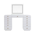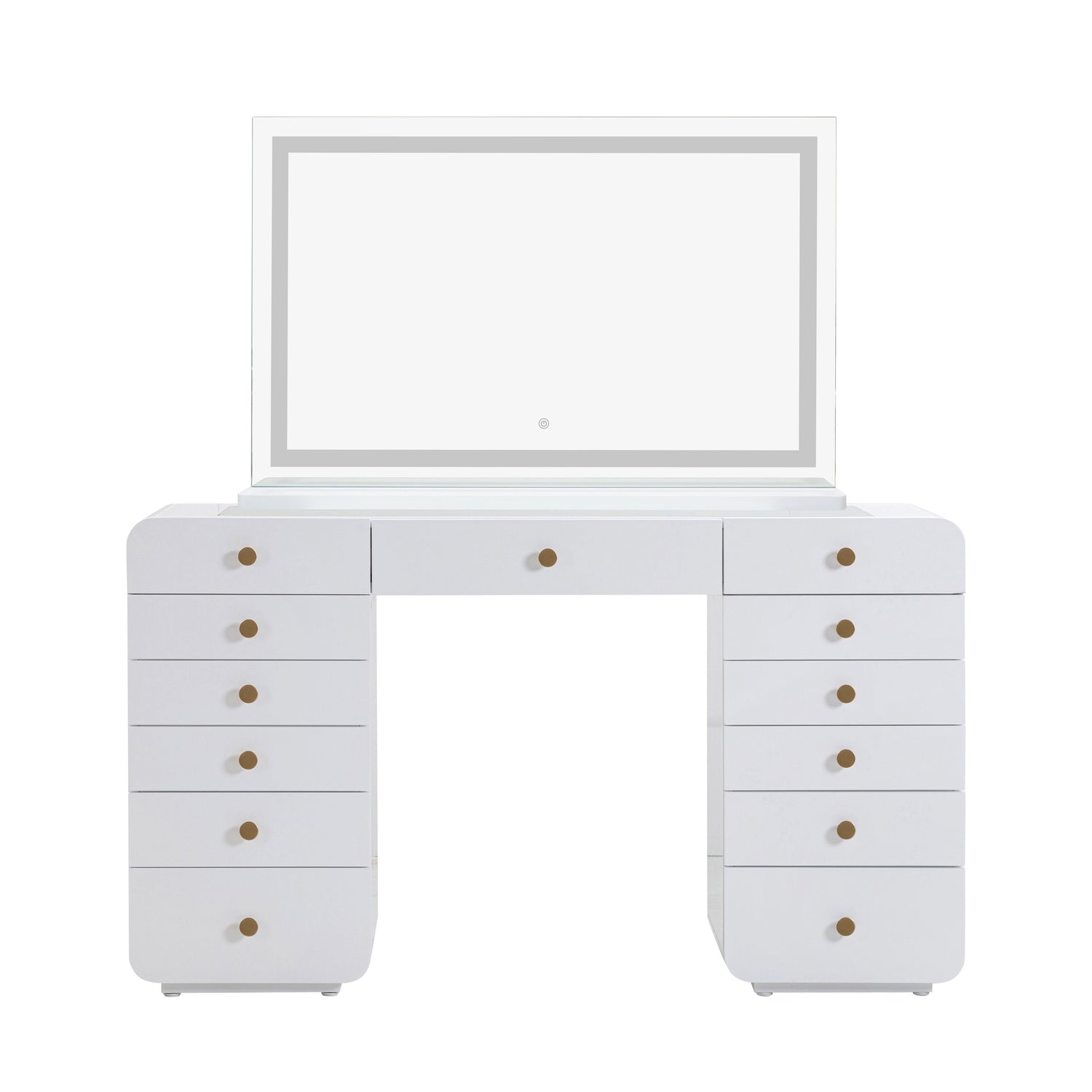 Hollywood 56" White 13-Drawer Desk with LED Panel Vanity Mirror
