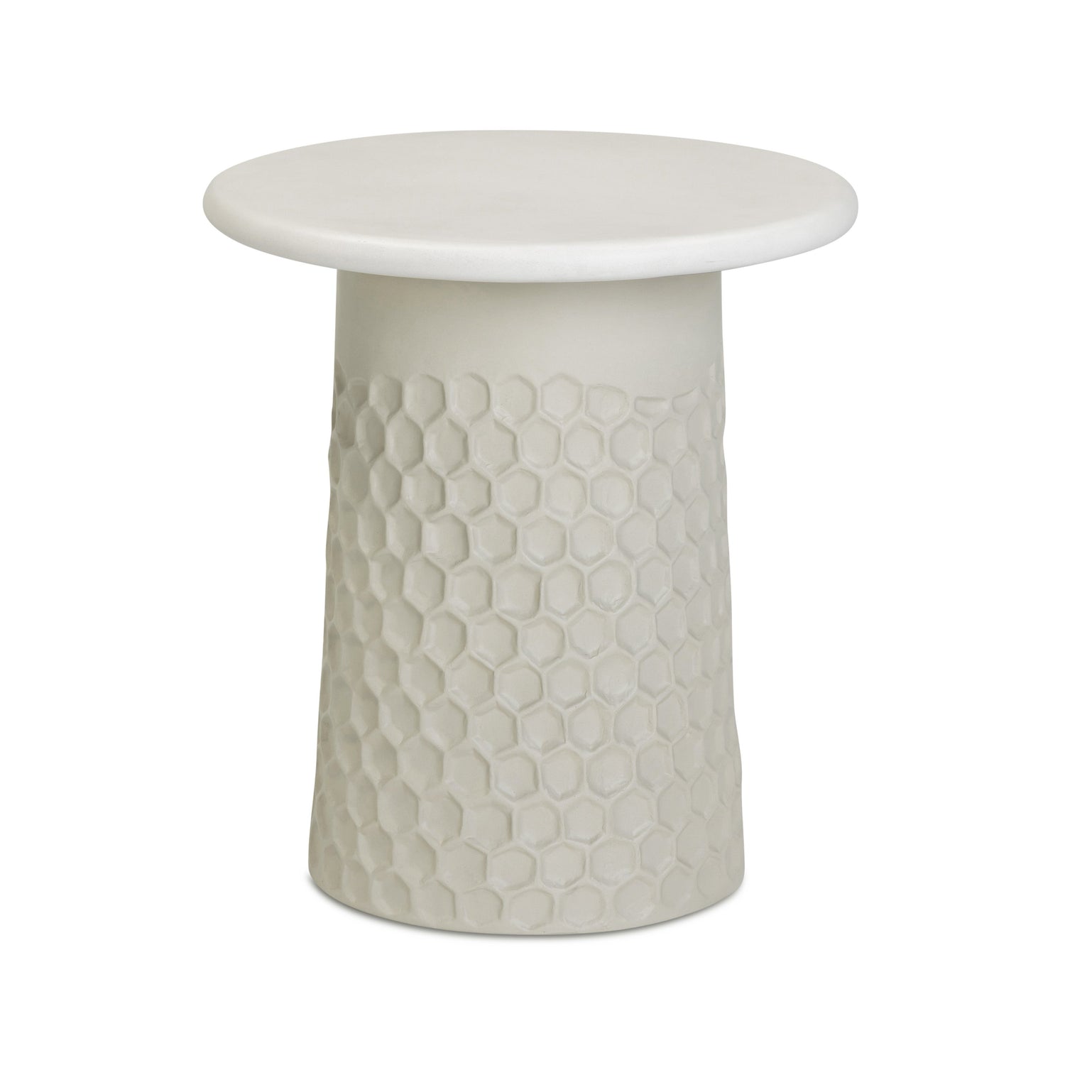 Hessa White Antiqued Indoor/Outdoor Concrete Chiseled Side Table