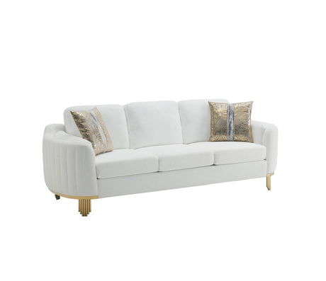 Simone Curved Sofa & Swivel Accent Chair in White Faux Sheepskin