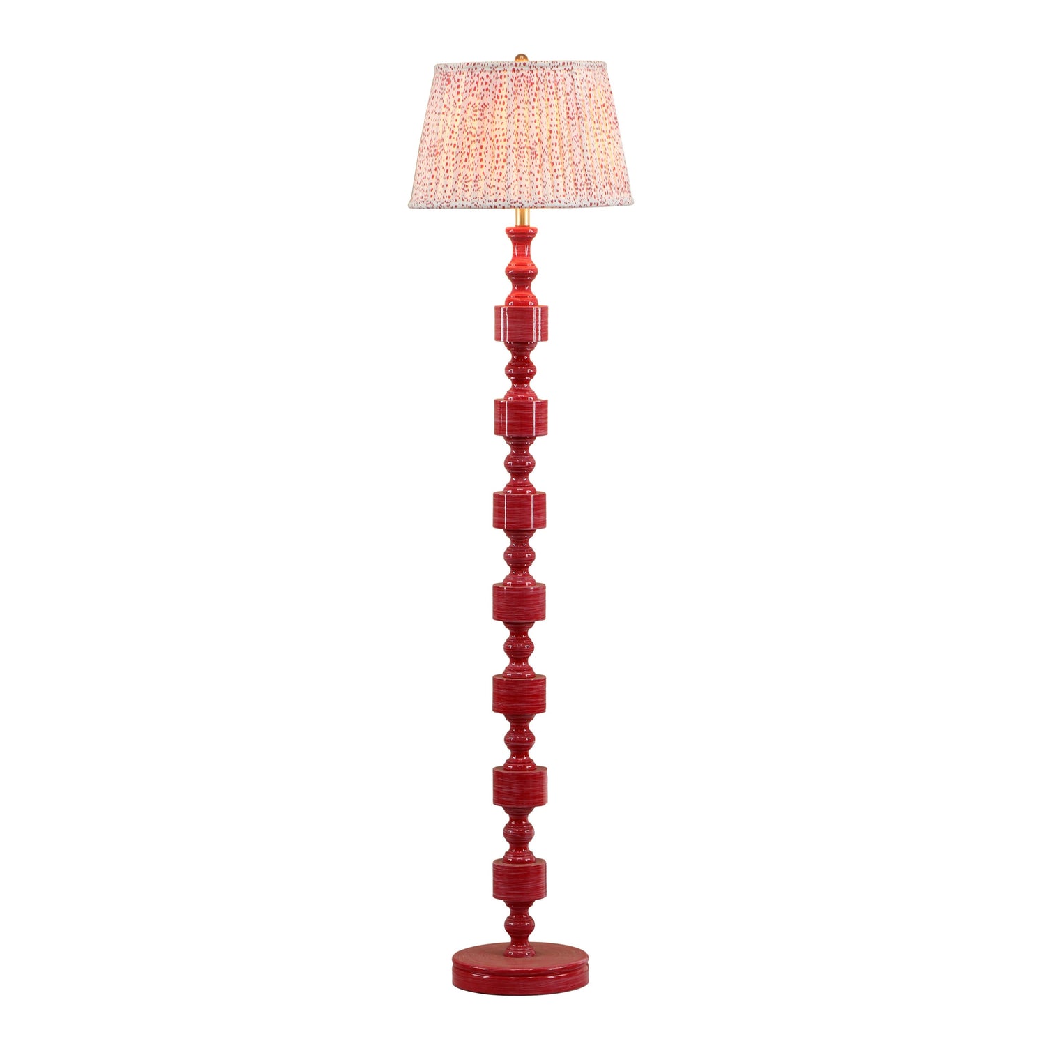Perk up your space with the Peggy Floor Lamp, featuring a spotted natural fiber shade and a glossy pink stand. With its felted base and LED compatibility, this piece is as practical as it is statement-making.