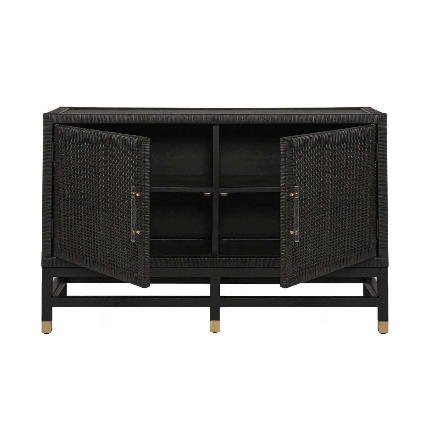 The Amara Buffet is the epitome of relaxed California-cool energy. This piece offers great storage and style with its high-quality wrapped rattan design, brass-capped legs and lucite hardware. Its natural, earthy look complements a wide variety of decor styles, the rattan also adds a touch of warmth and texture to any space. Available in Natural or Charcoal.