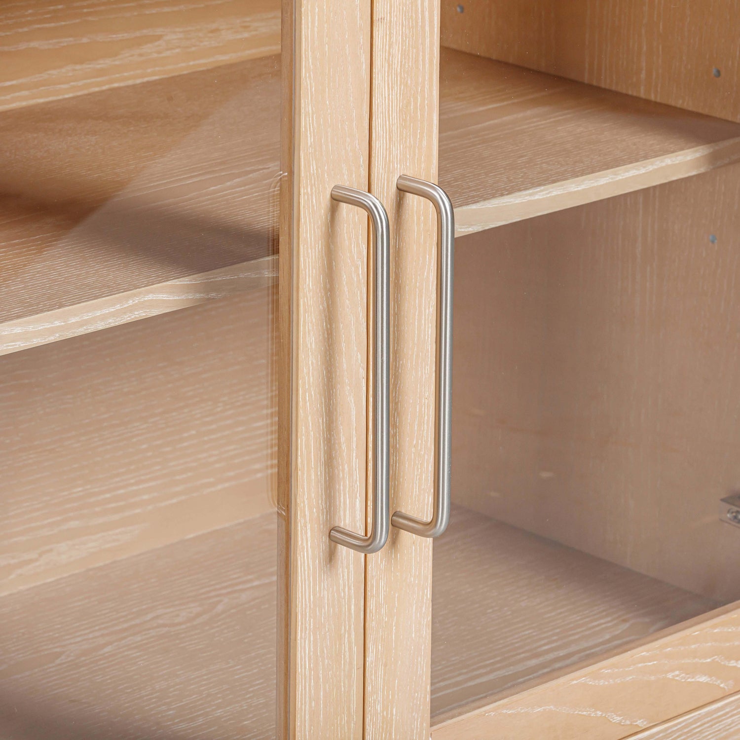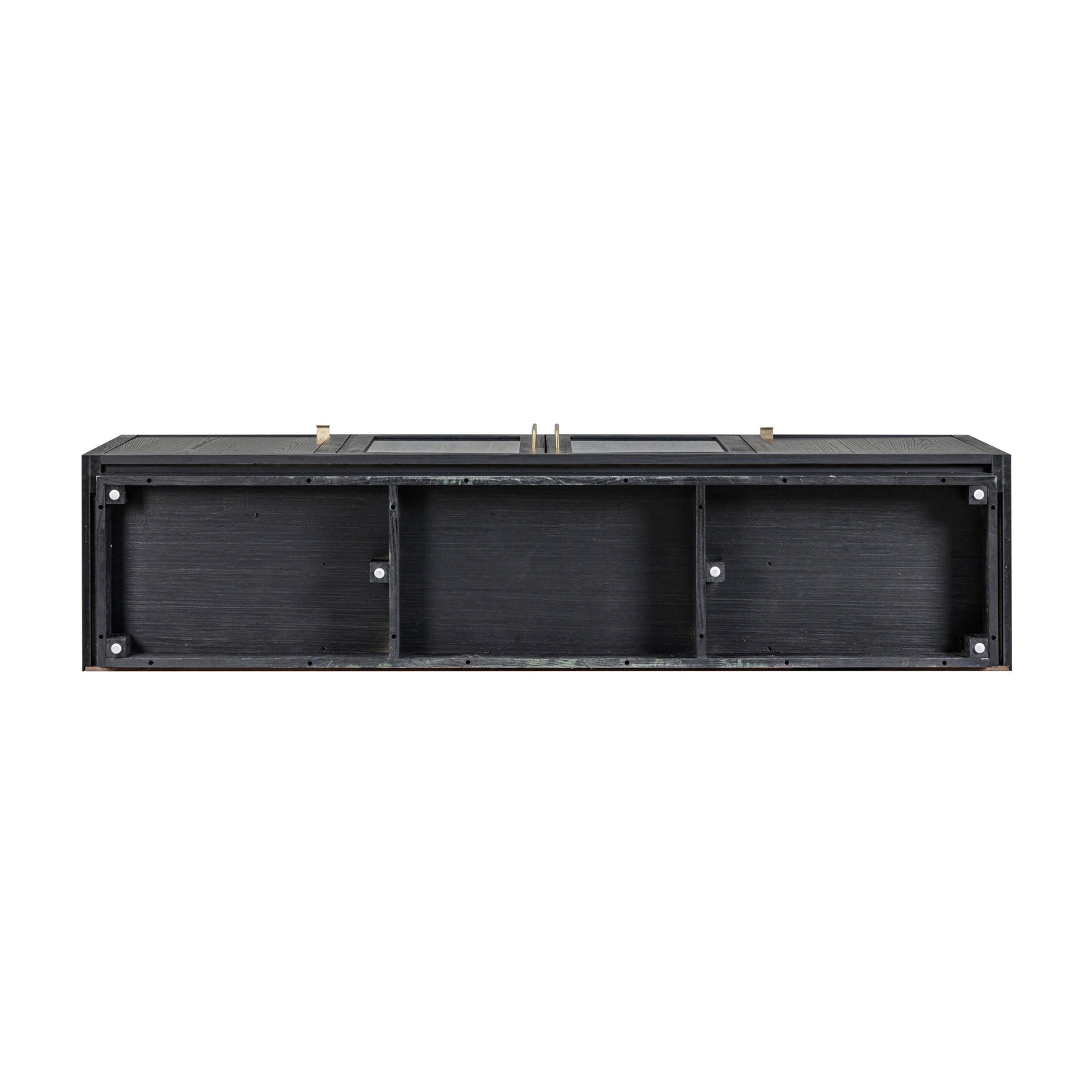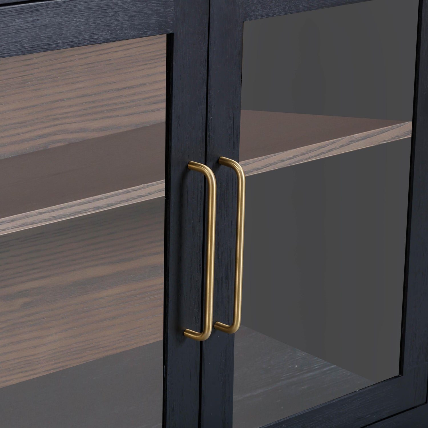 - Cord management cutouts behind the glass doors