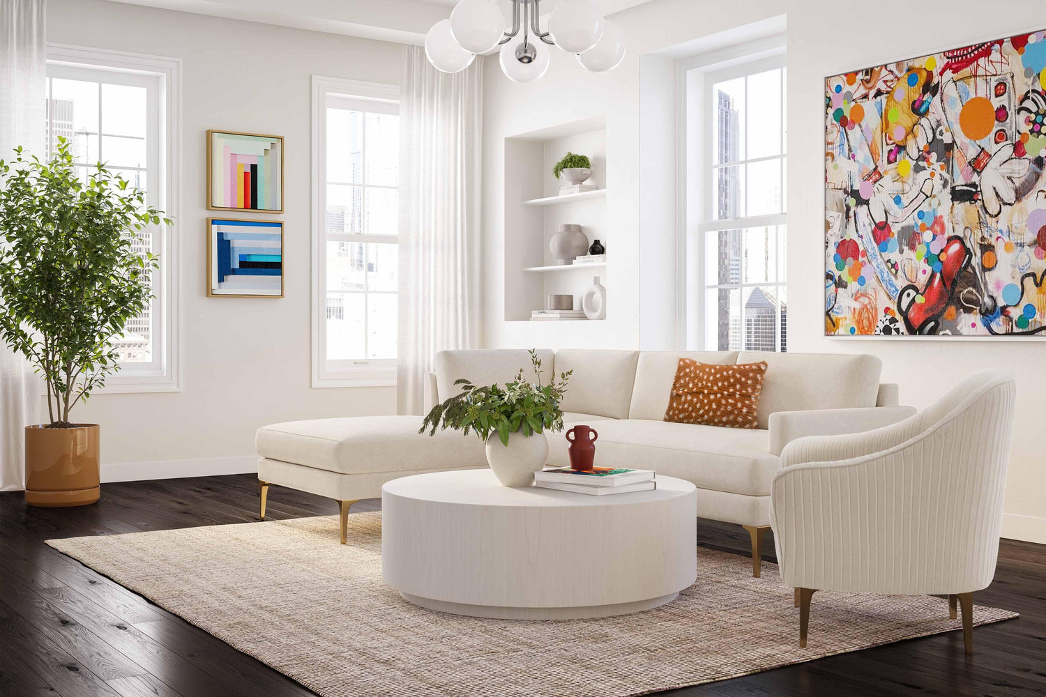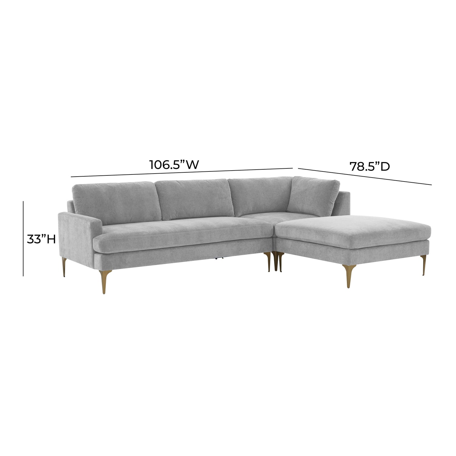 Serena Cream Velvet LAF Chaise Sectional with Brass Legs