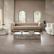 Available in Camel Performance Velvet or Ivory Boucle Fabric